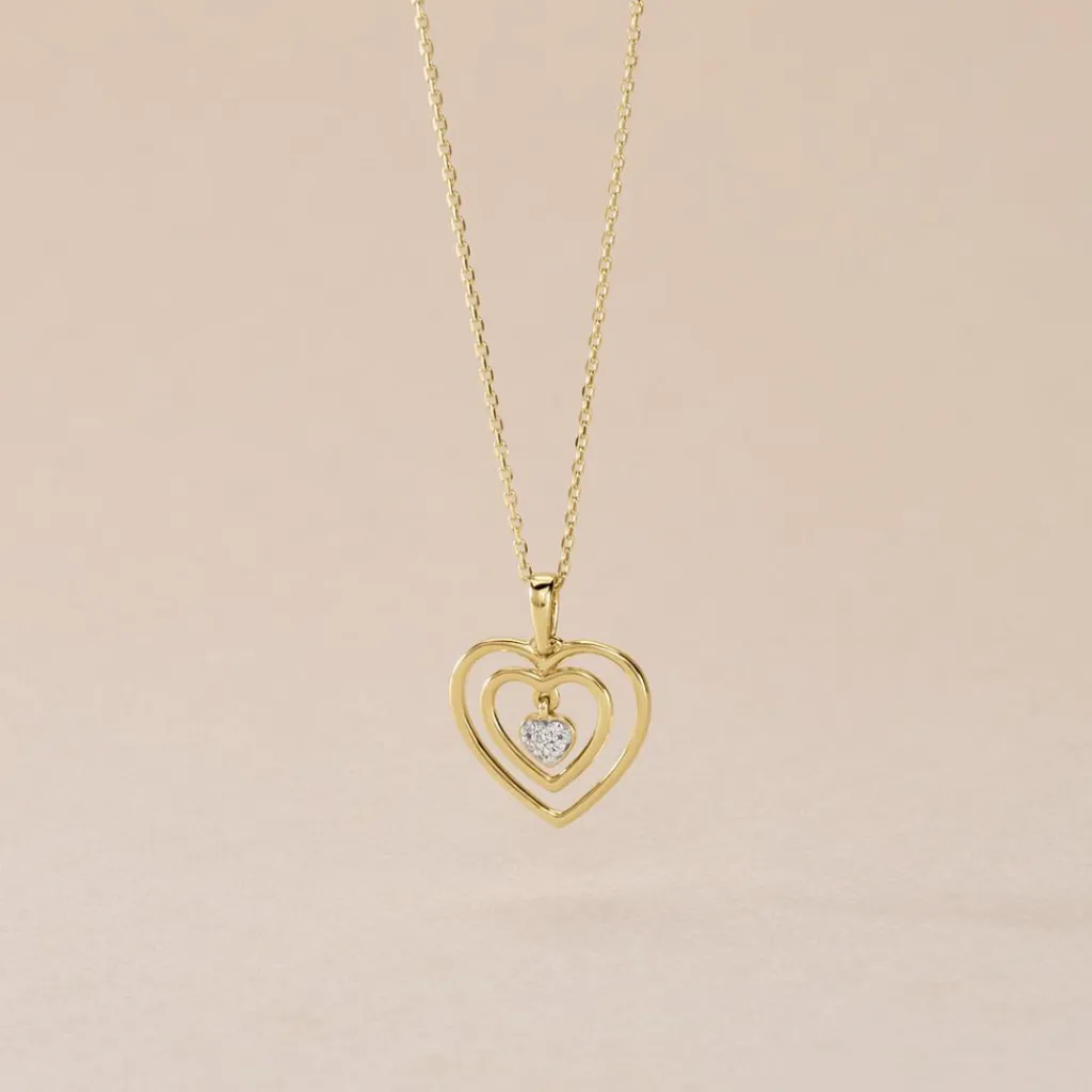 Collier Or Jaune 375/1000 Forme Coeur Diamants 40+2cm