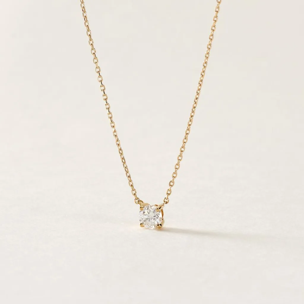 Collier Or Jaune 375/1000 Solitaire Diamant 0.25cts Serti 4 Griffes Maille Forçat 40+2cm