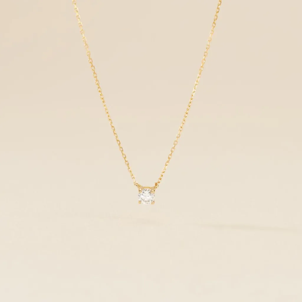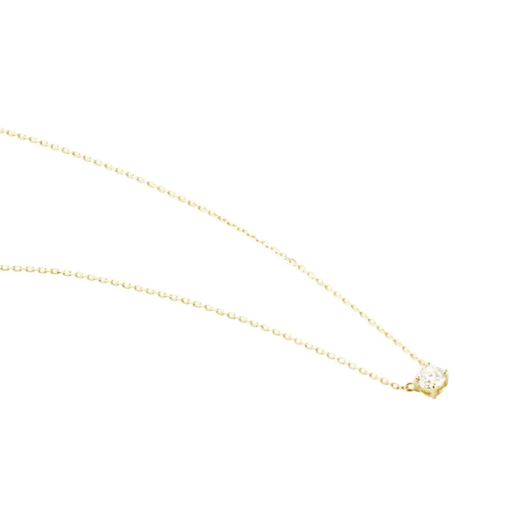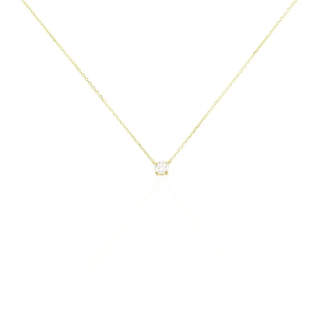 Collier Or Jaune 750/1000 Solitaire Diamant Synthetique 0.20cts Beliere Fixe Maille Forcat 40+5cm