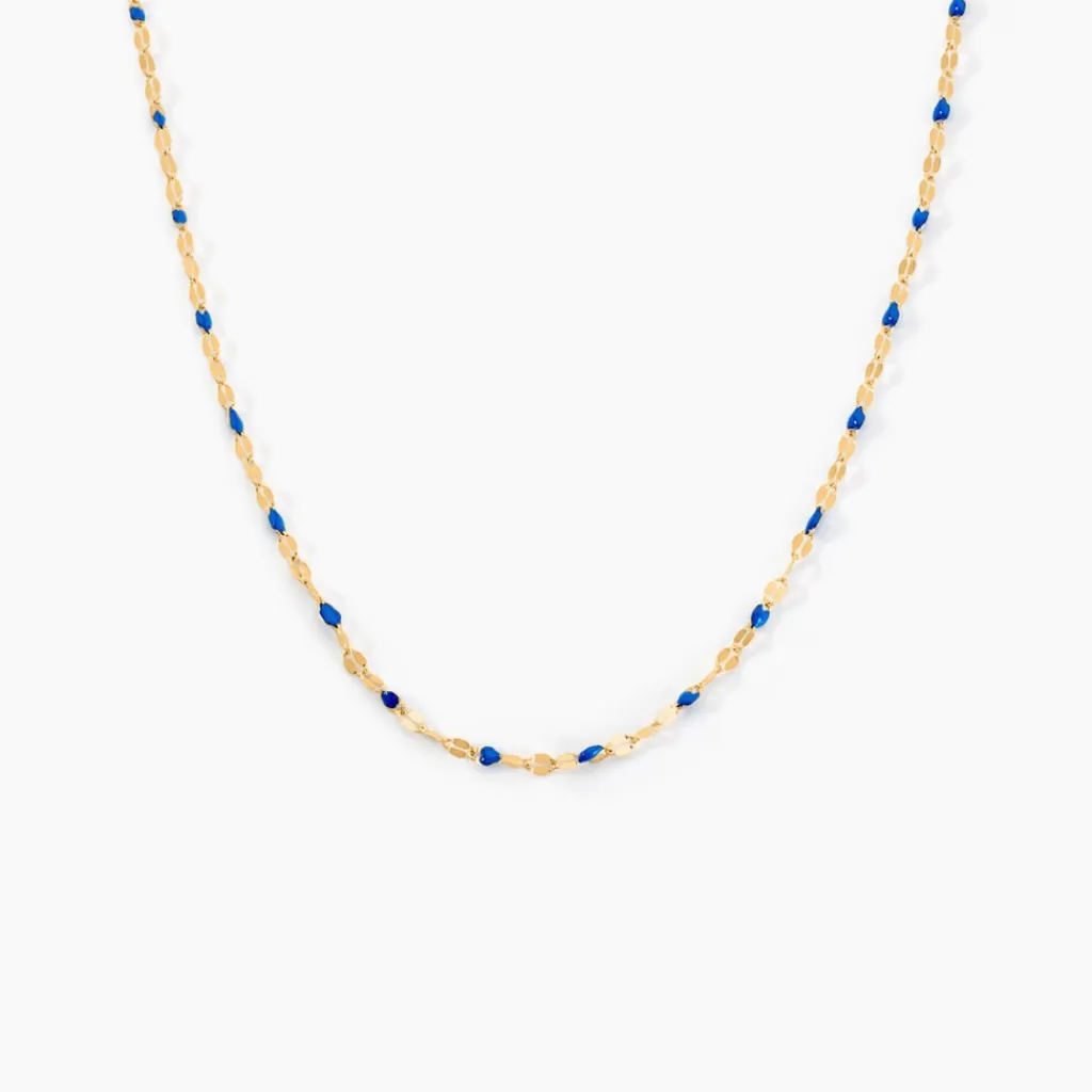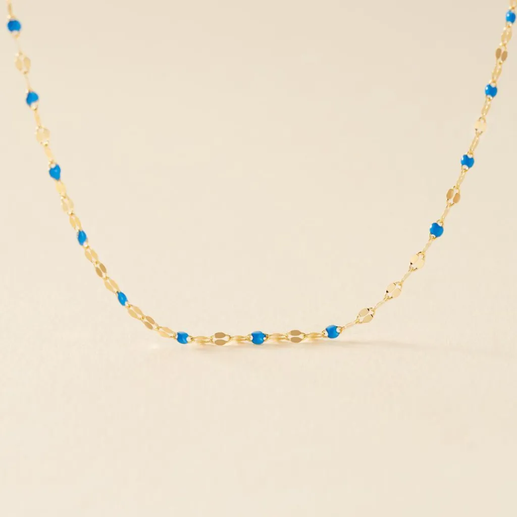 Collier Or Jaune 375/1000 Email Bleu Maille Lumina 40+2cm