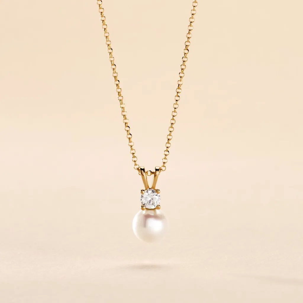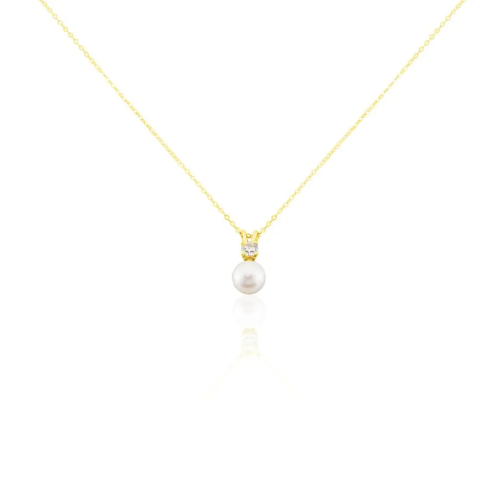 Collier Or Jaune 375/1000 Forme C艙ur Pavage Oxydes De Zirconium Et Perle De Culture 5-5.5mm Maille Jaseron 40+2cm