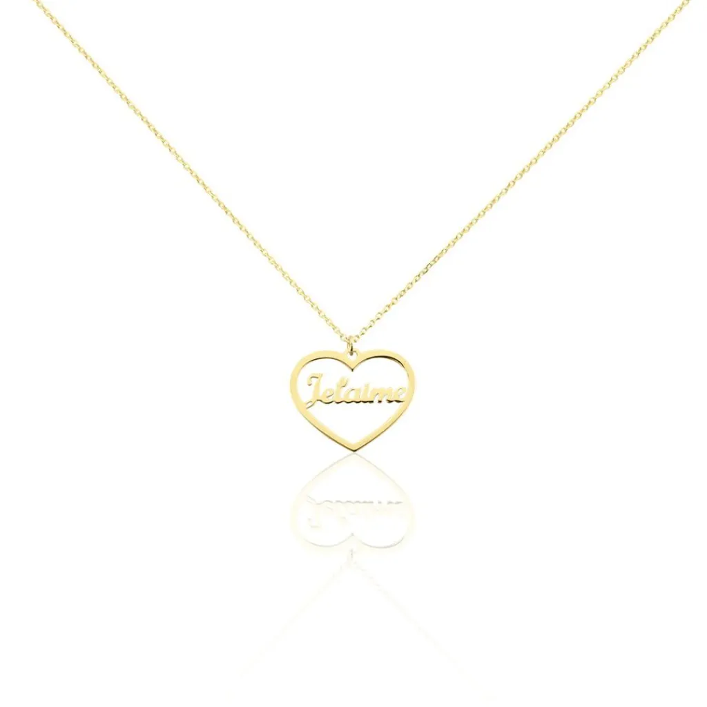 Collier Or Jaune 375/1000 C艙ur Ajoure Avec Message Je T’aime Maille Jaseron 42cm