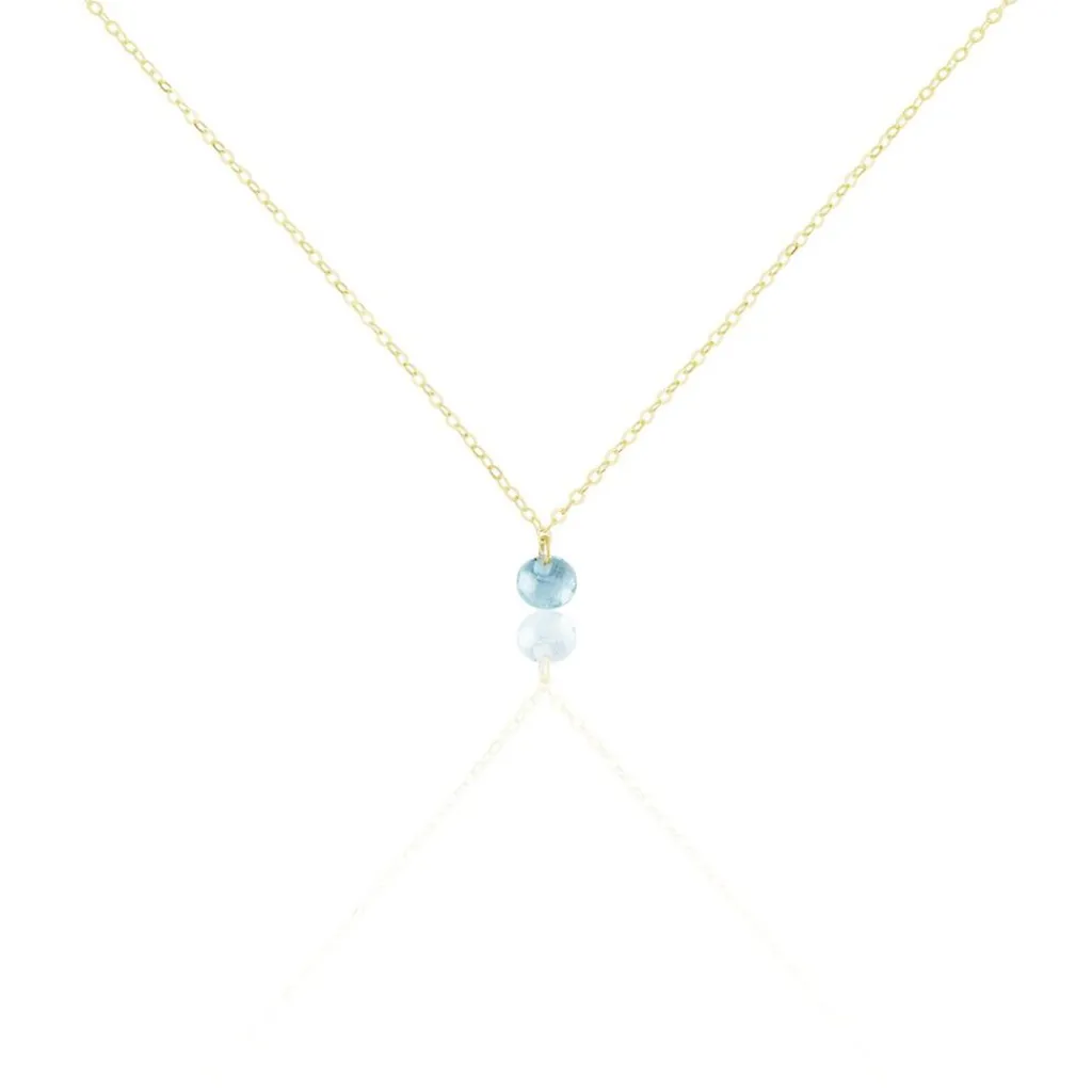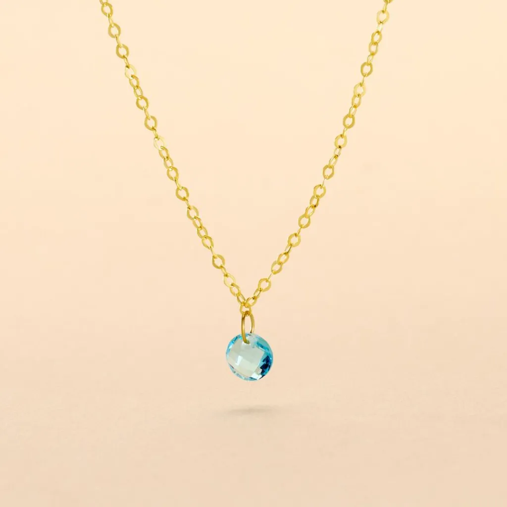 Collier Or Jaune 375/1000 Pampille Oxyde De Zirconium Bleu Maille Forcat 38/40cm