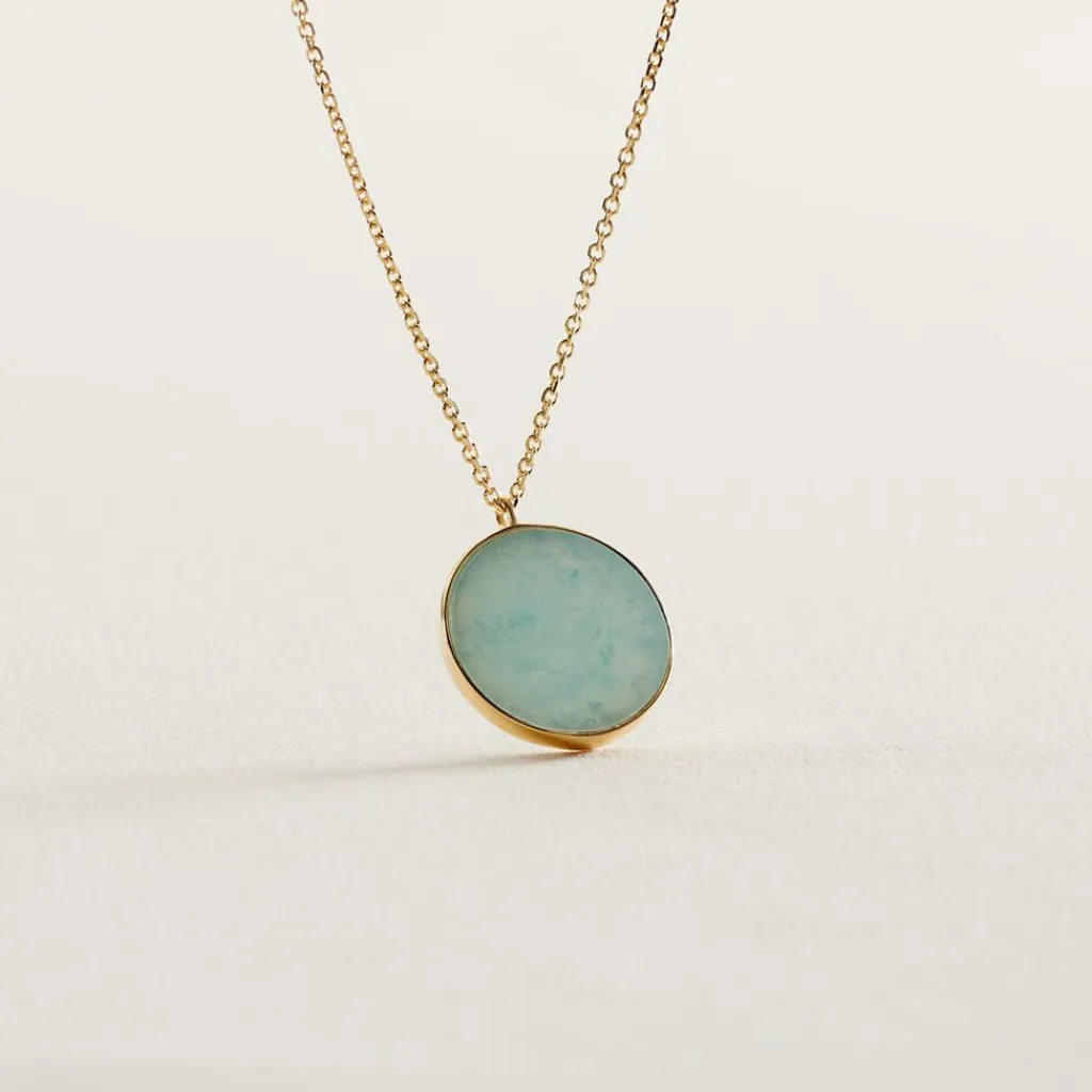 Collier Or Jaune 375/1000 Cercle Amazonite Maille Jaseron 40+2cm