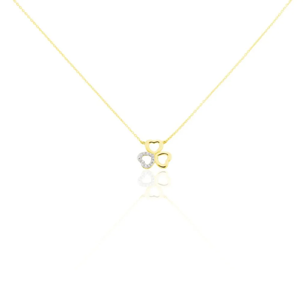 Collier Or Jaune 375/1000 Forme Triple C艙urs Maille Forçat Pavage Diamants 42cm