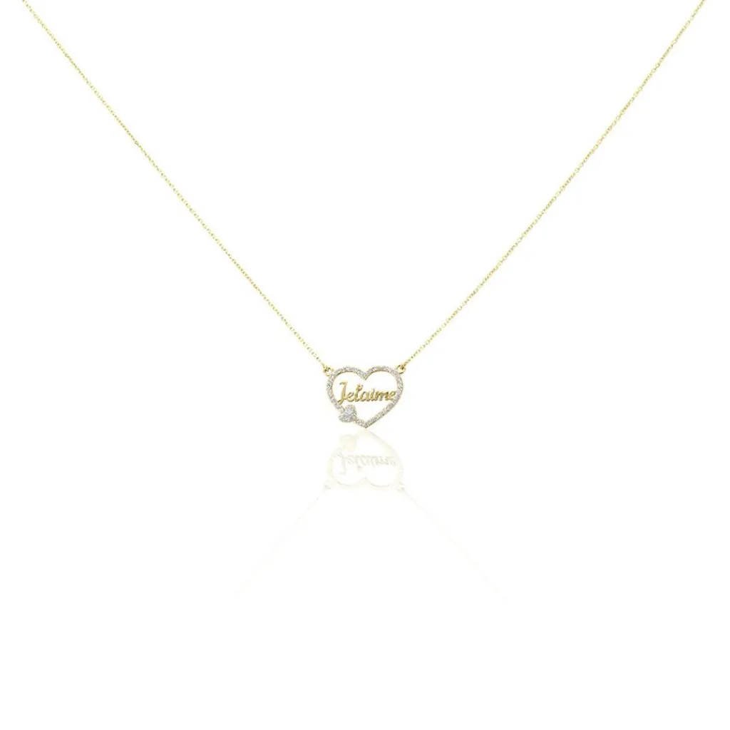 Collier Or Jaune 375/1000 Double C艙urs Glitter Argente Message Je T’aime Maille Jaseron 40+2cm