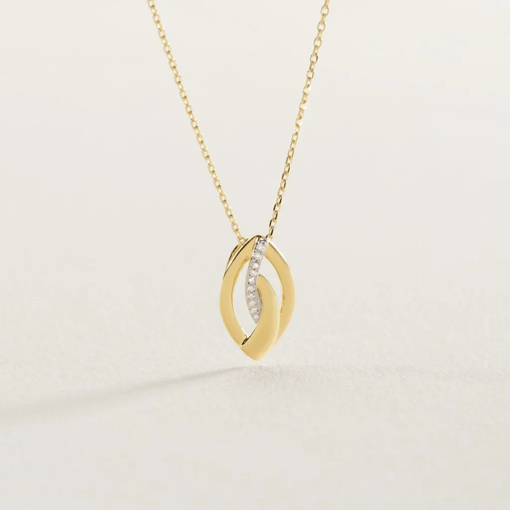 Collier Or Jaune 375/1000 Forme Gouttes Entrelacées Pavage Diamant Blanc Maille Forçat 40+2cm