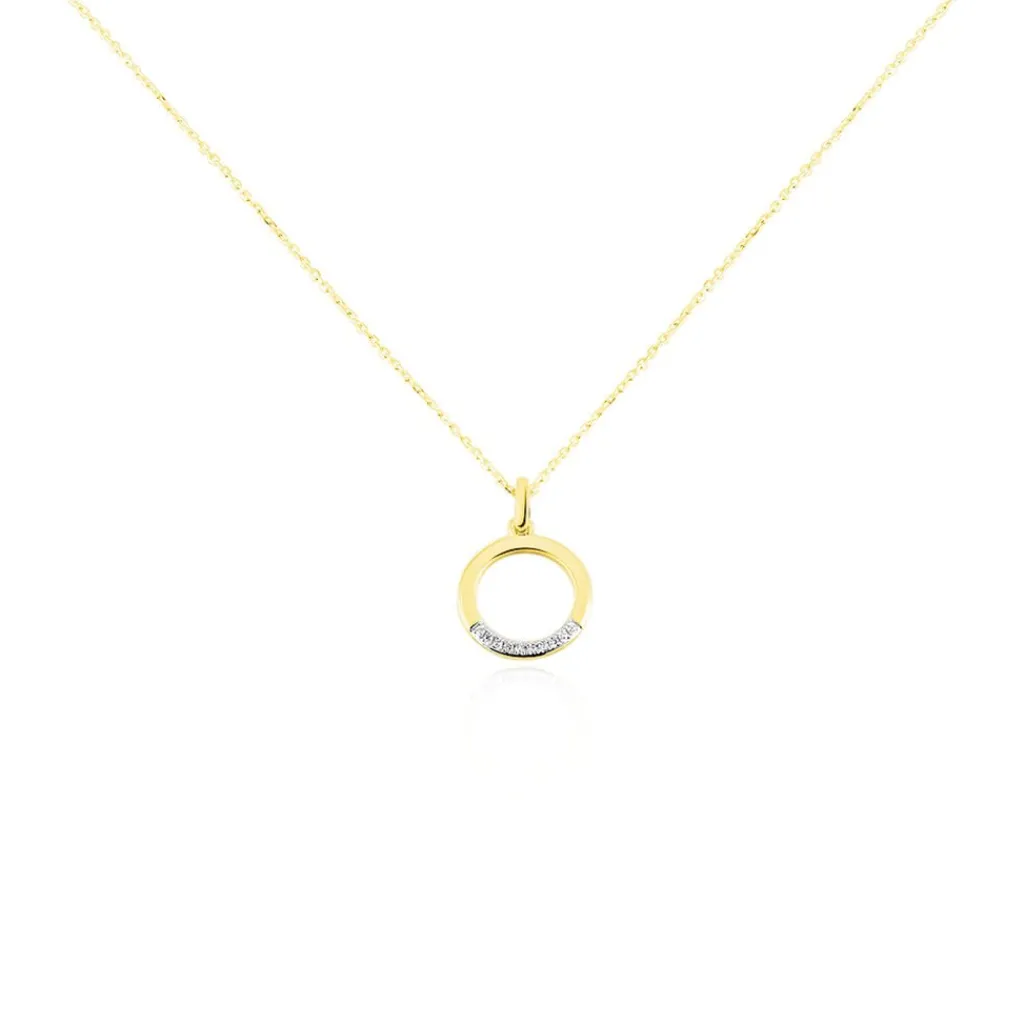 Collier Or Jaune 375/1000 Forme Cercle Pavage Diamants 42cm