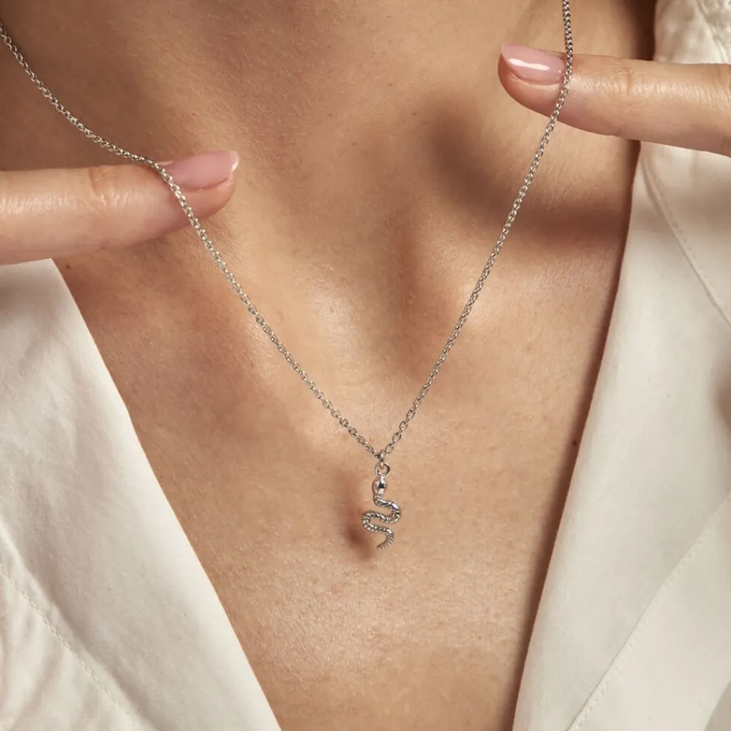 Collier Argent Blanc 925/1000 Serpent Maille Forcat 45cm