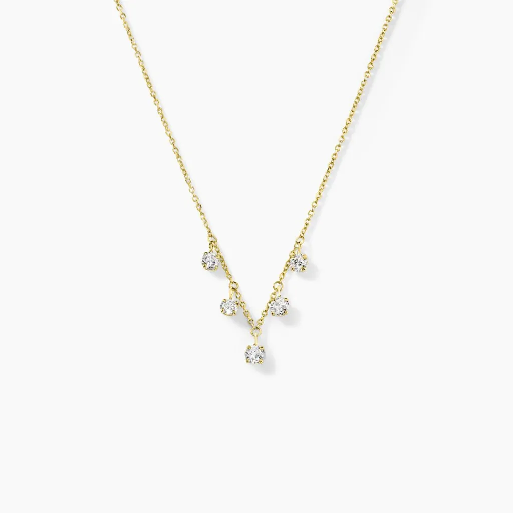 Collier Or Jaune 375/1000 Pampille 5 Diamants Synthetiques 0.50cts Sertis Griffes Maille Forcat 40+2cm