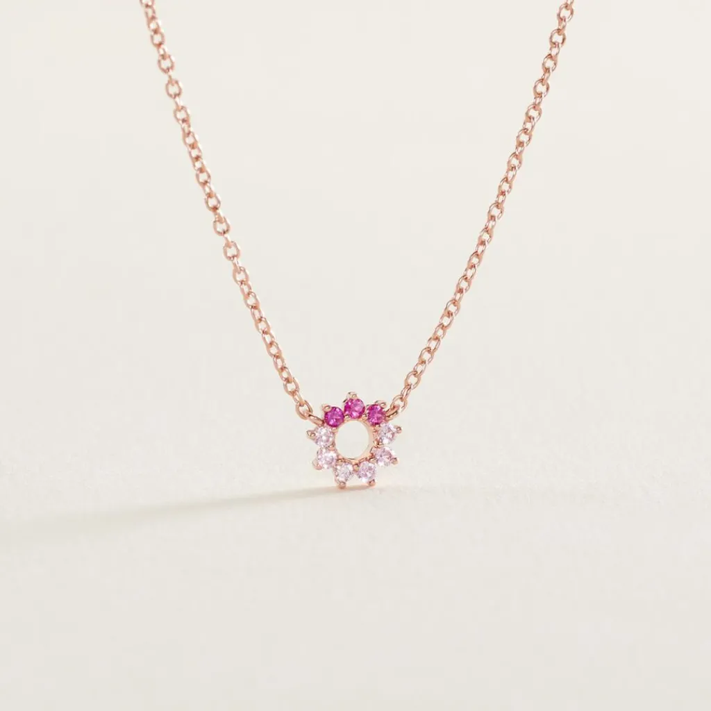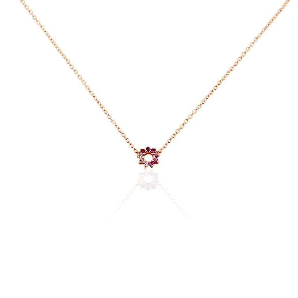 Collier Argent Rose 925/1000 Fleur Camaieu Rose Serti Griffes Oxydes De Zirconium Maille Forçat 45cm
