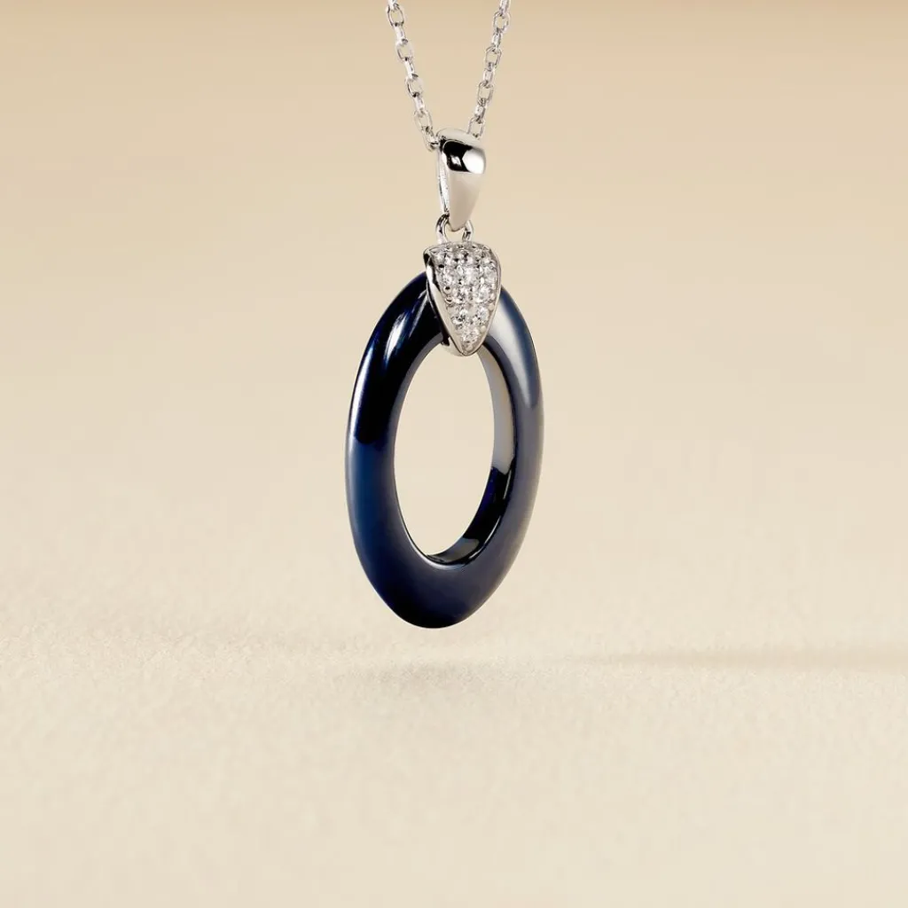 Collier Argent Blanc 925/1000 Ceramique Bleue Ovale Pavage Oxydes De Zirconium Maille Forcat 45cm