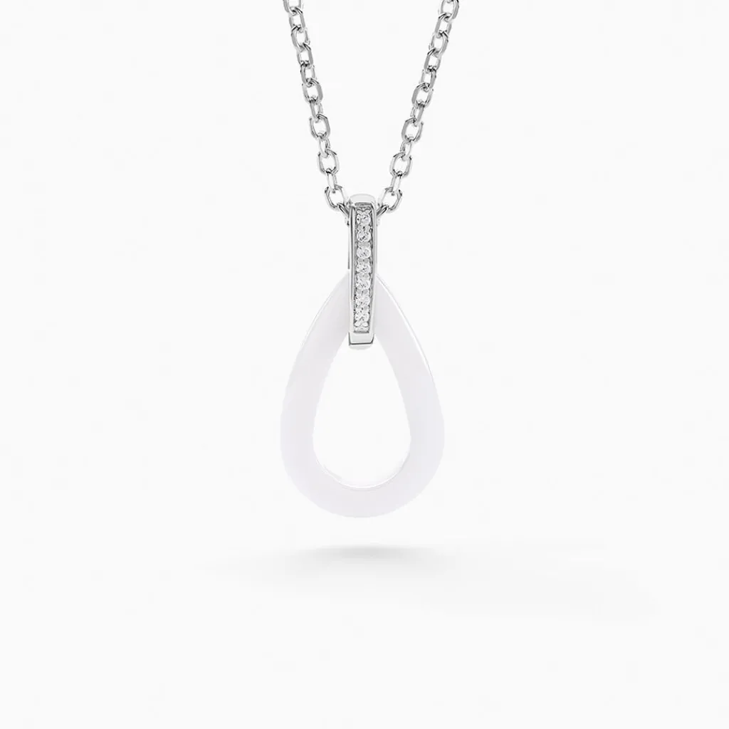 Collier Argent Blanc 925/1000 Céramique Blanche Goutte Pavage Oxydes De Zirconium Maille Forçat 42+3cm
