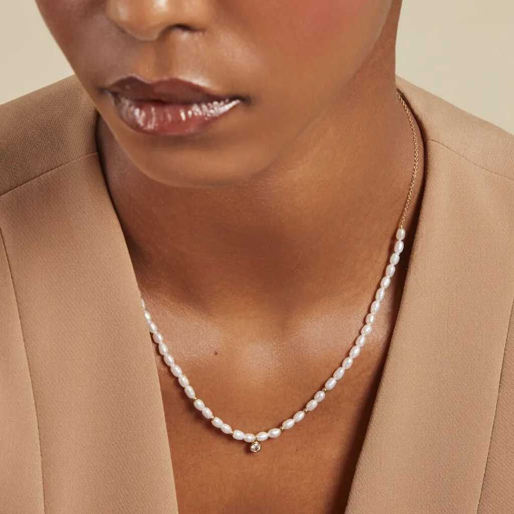 Collier Argent Blanc 925/1000 Oxyde De Zirconium Serti Clos Et Perles De Culture 42+3cm