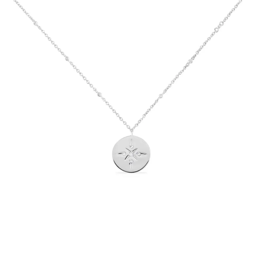 Collier Argent 925/1000 Pastille Serti Etoile Oxyde 48cm