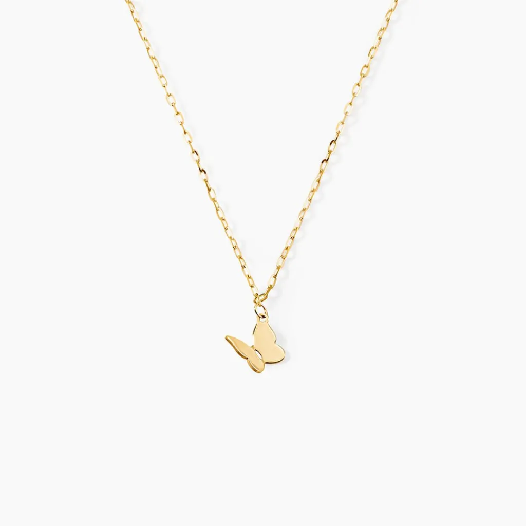 Collier Or Jaune 375/1000 Papillon Effet Martele Maille Forcat Ronde 38+2cm