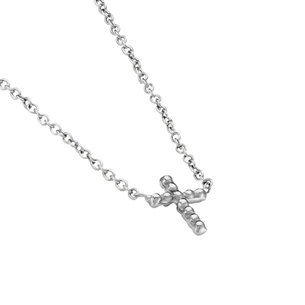 Collier Argent Blanc 925/1000 Croix Effet Perlé Maille Forçat 45cm