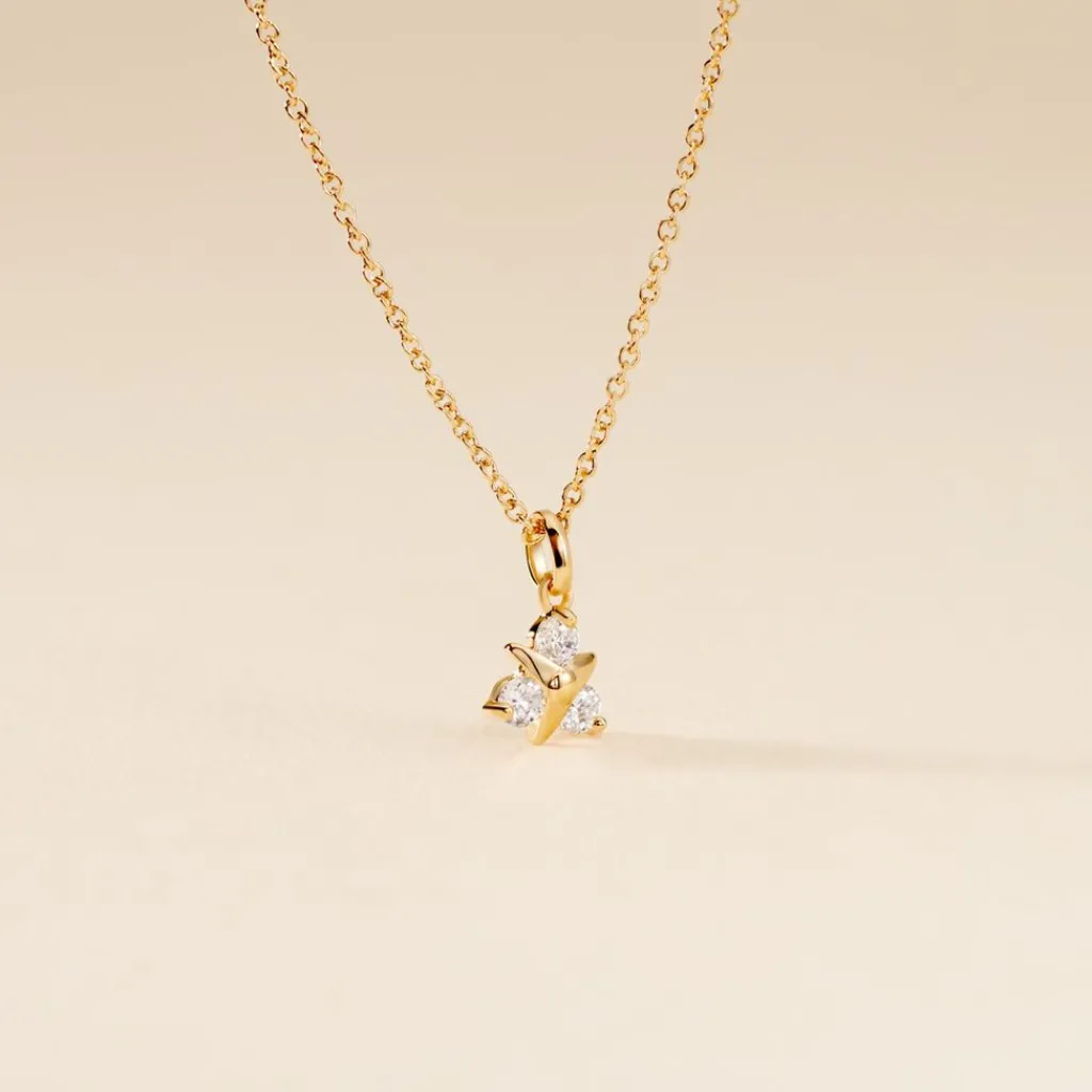 Collier Plaqué Or Fleur Oxydes De Zirconium Maille Forcat 45cm