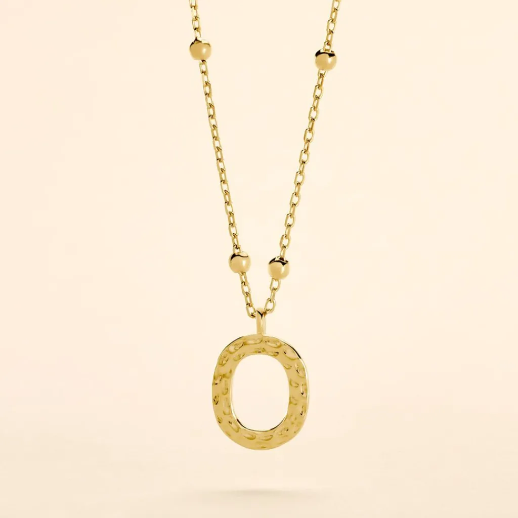 Collier Plaque Or Jaune Lettre O Martelee Et Petites Boules Chaine Maille Forcat Longueur 45cm