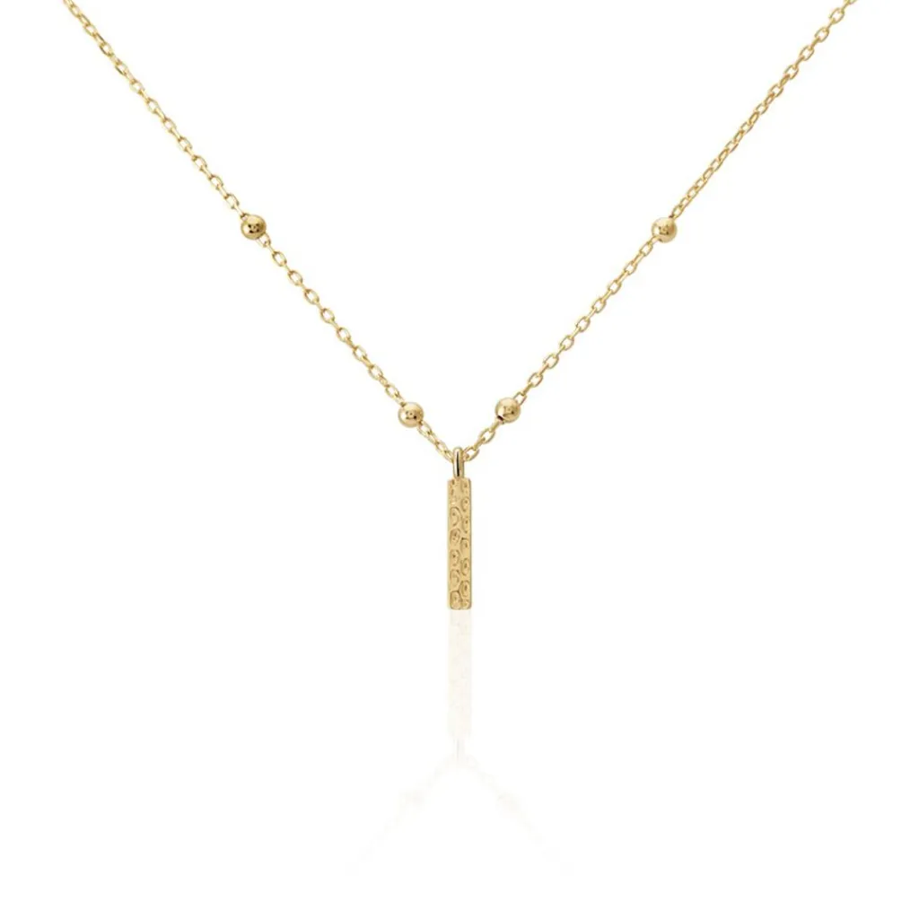 Collier Plaque Or Jaune Lettre I Martelee Et Petites Boules Chaine Maille Forcat Longueur 45cm