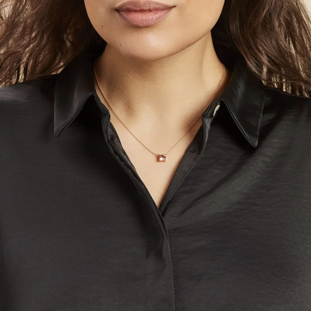 Collier Plaqué Or Jaune Oxyde De Zirconium Rose 6mm 4 Griffes Maille Forçat 45cm