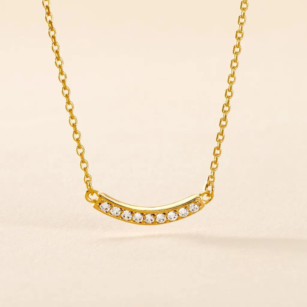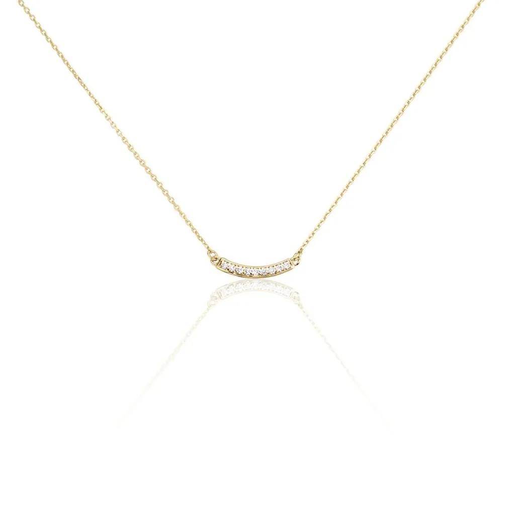 Collier Plaqué Or Jaune Barrette Pavage Oxydes De Zirconium Maille Forcat 44cm