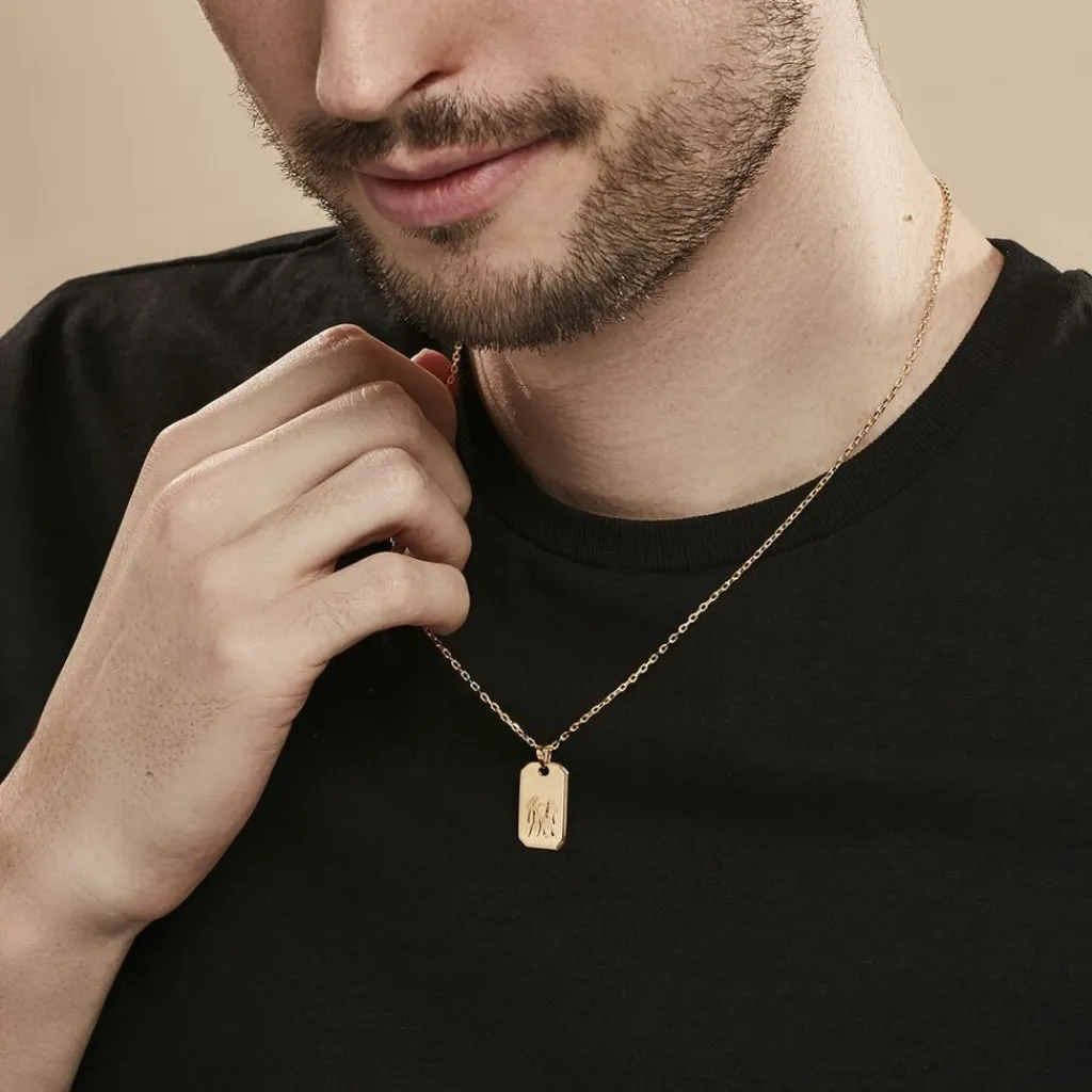 Collier Plaqué Or Jaune Plaque Gravee Signe Astrologique Gemeaux Maille Forcat 50cm