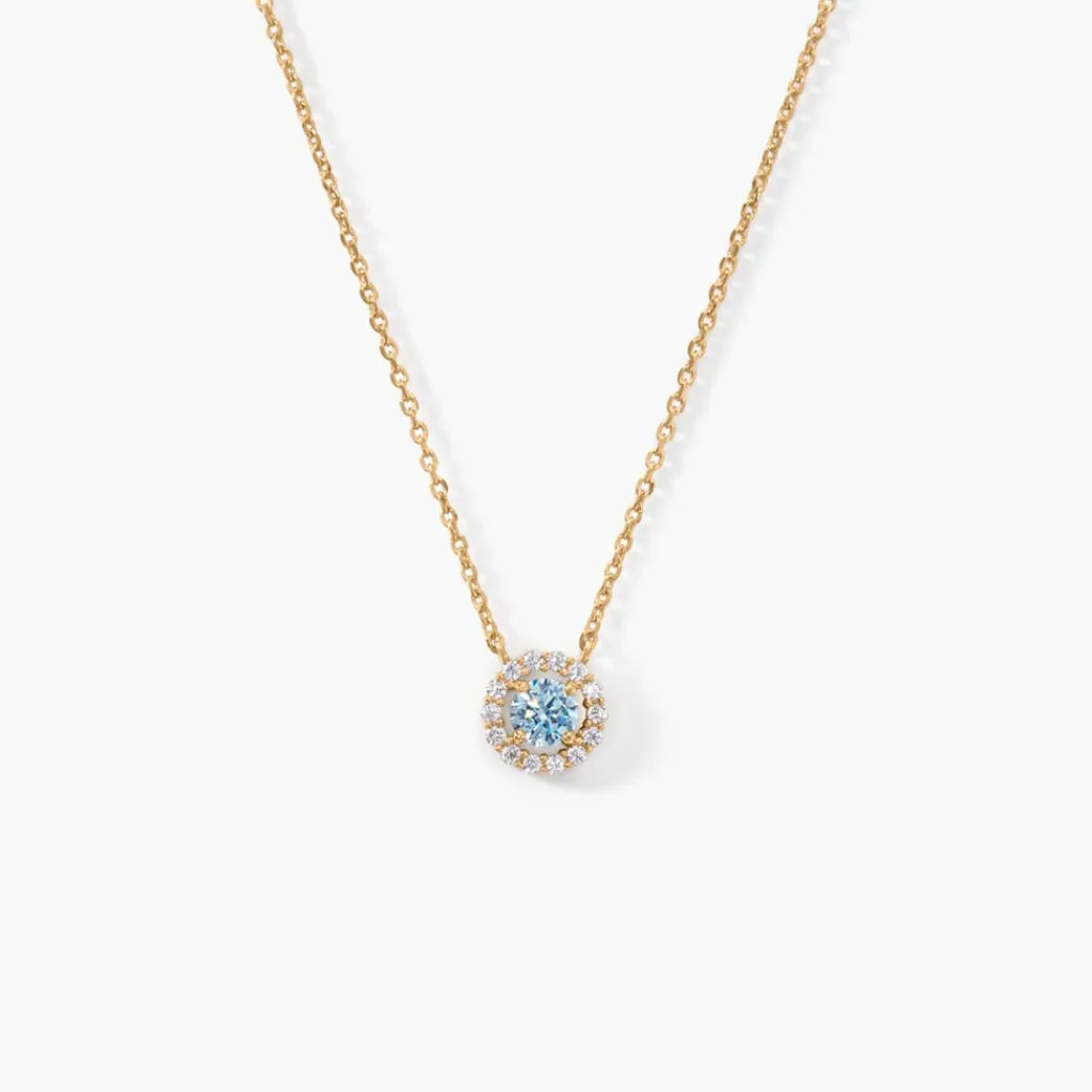 Collier Plaqué Or Jaune Entourage Pierre Artificielle Bleue Pavage Oxydes De Zirconium Blancs Maille Forcat 40+5cm