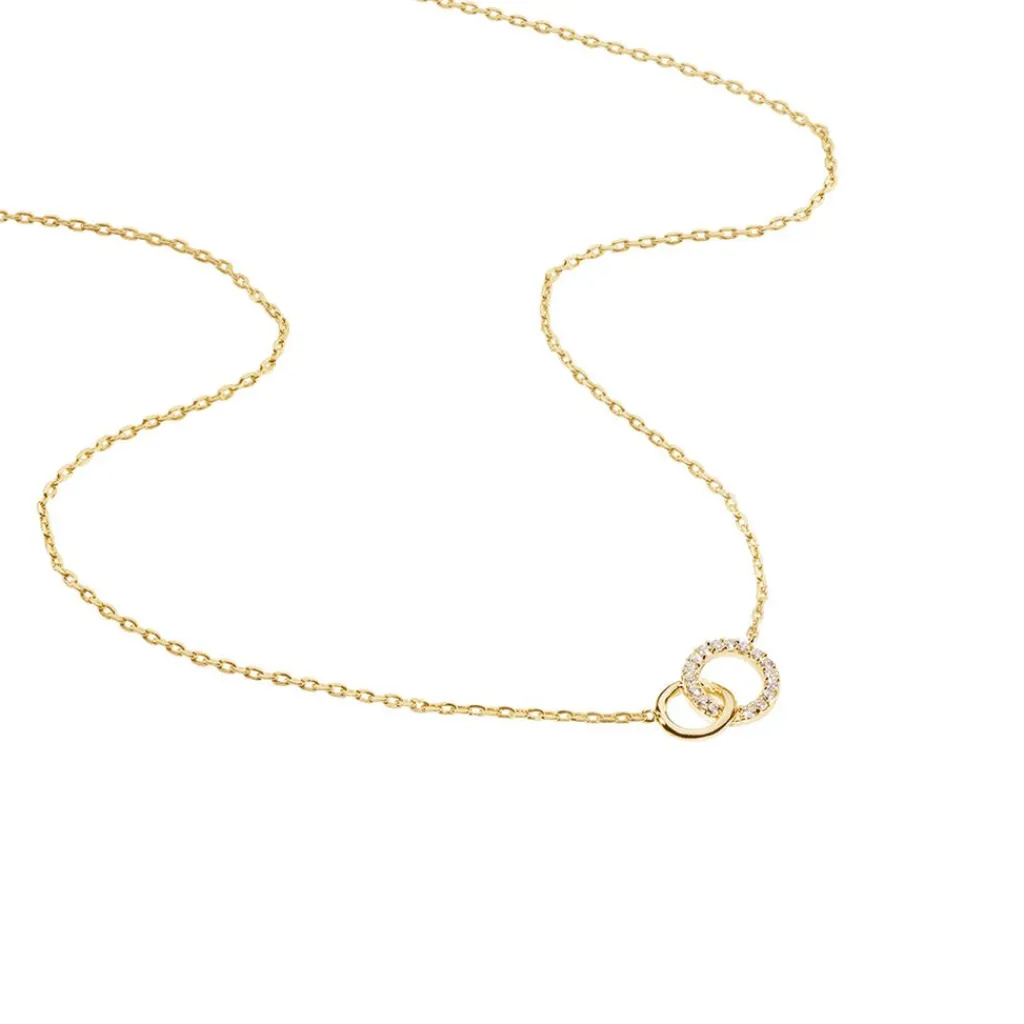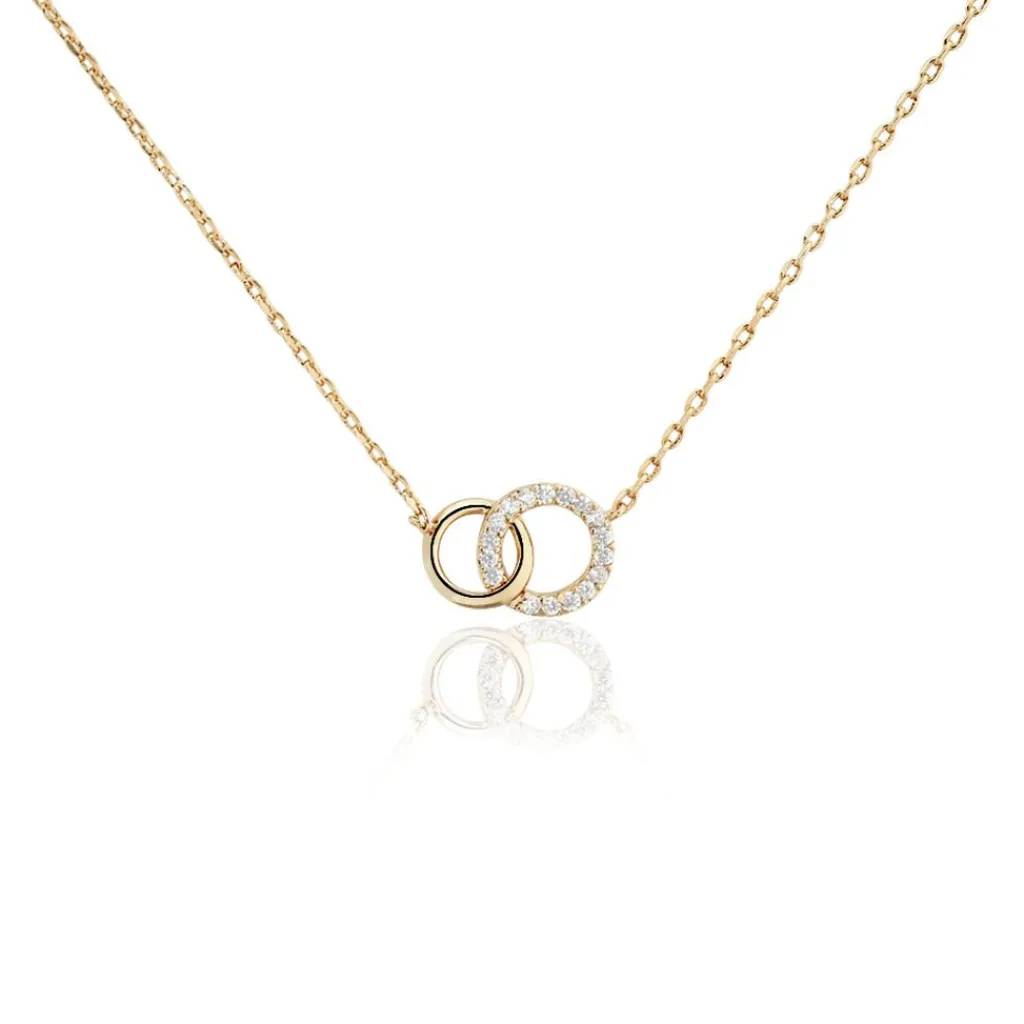 Collier Plaqué Or Jaune Double Cercles Entrelaces Oxydes De Zirconium Blanc 44cm