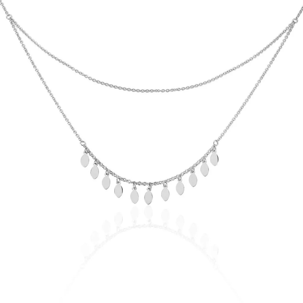 Collier Argent Blanc 925/1000 Pampilles Gouttes Double Maille Forcat 42cm