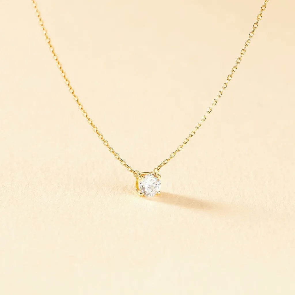 Collier Or Jaune 375/1000 Maille Forçat Oxyde De Zirconium 4mm 42cm