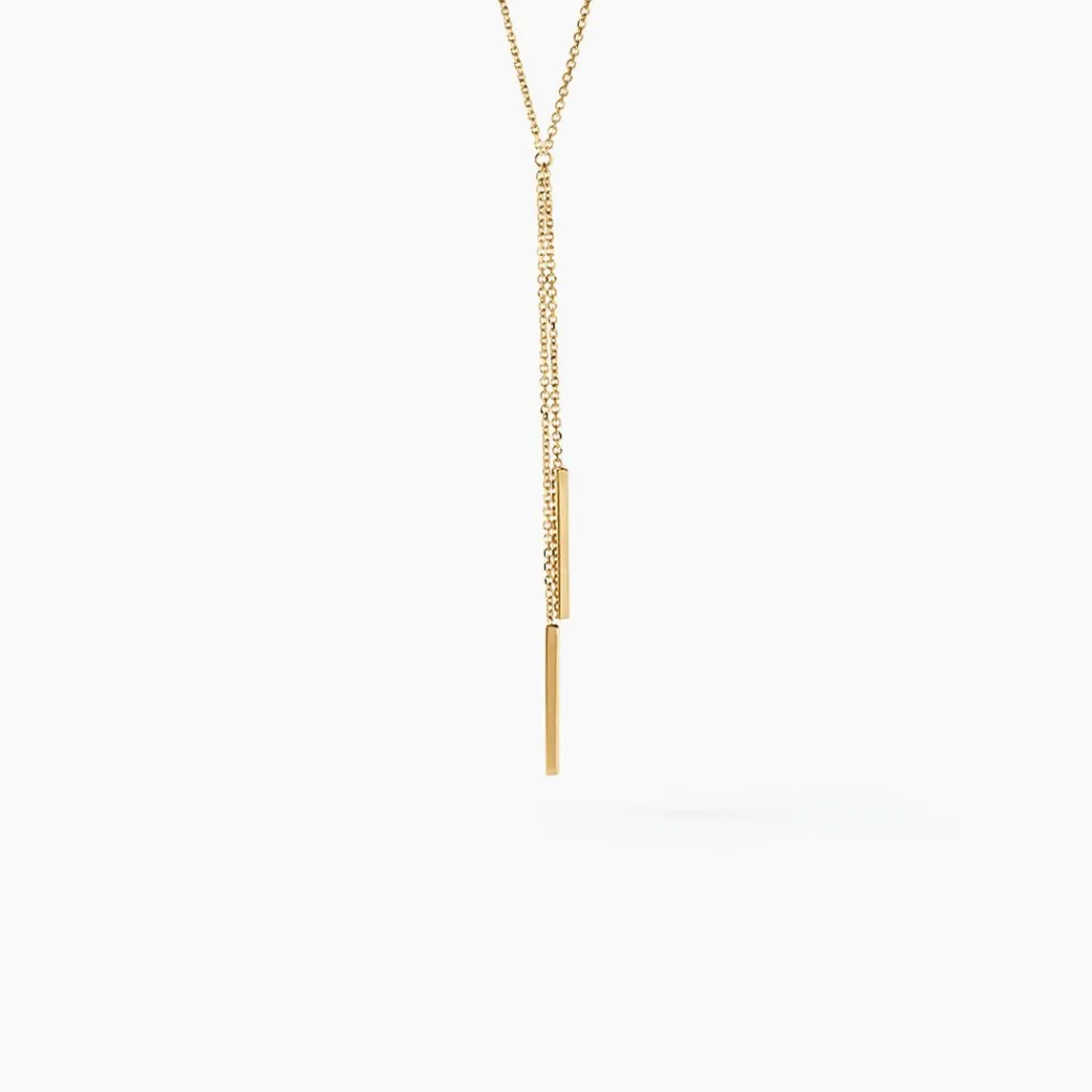 Collier Or Jaune 375/1000 Motif Double Chaine Cravate Avec Barrettes Maille Jaseron 40+2cm