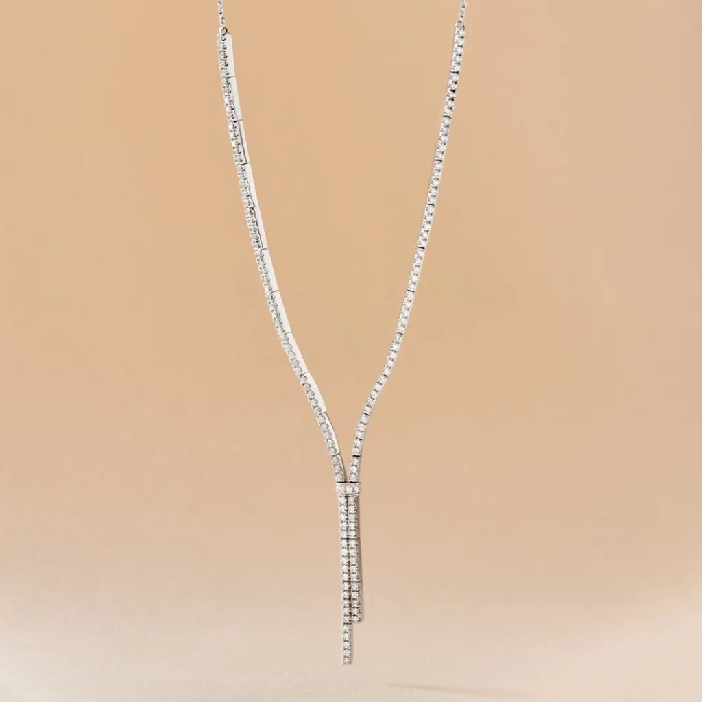 Collier Or Blanc 750/1000 Riviere De Diamants Et Maille Forçat 45cm