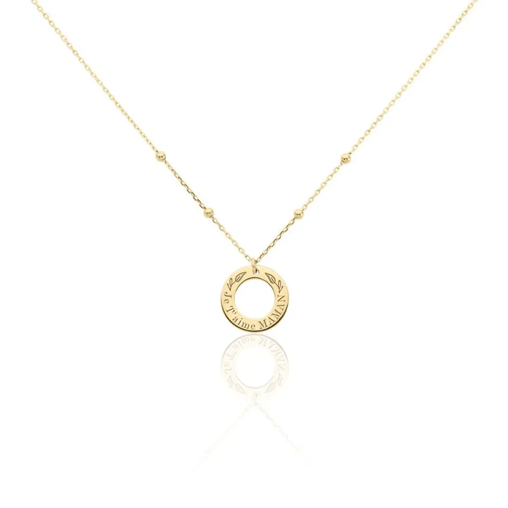 Collier Plaqué Or Jaune Cercle Message Je T’aime Maman Maille Forcat Et Boules 45cm