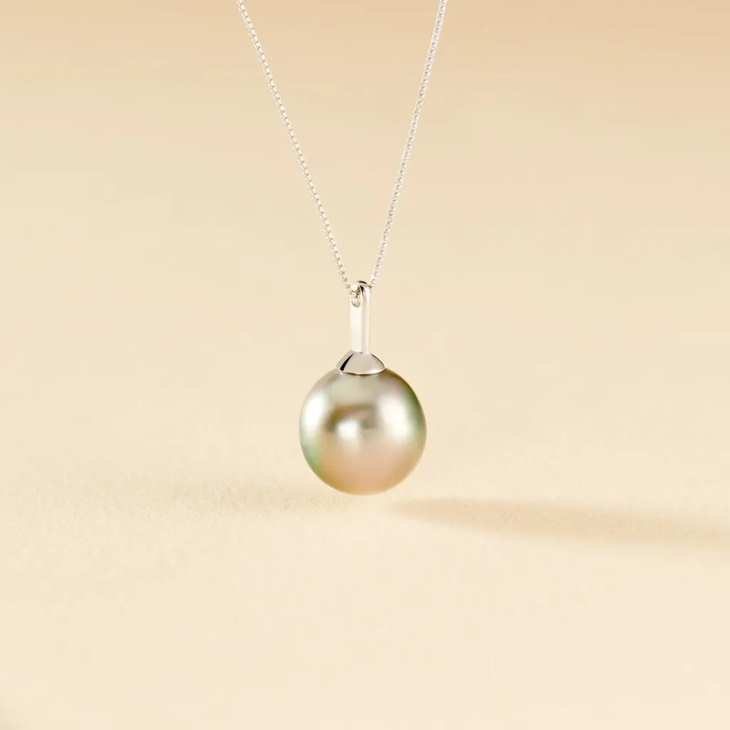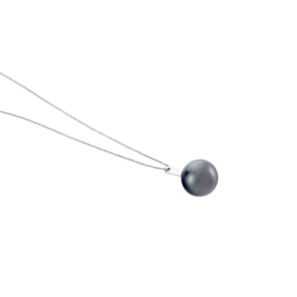 Collier Or Gris 375/1000 Perle De Culture Mer Du Sud Tahiti 9/9.5mm Semi-ronde