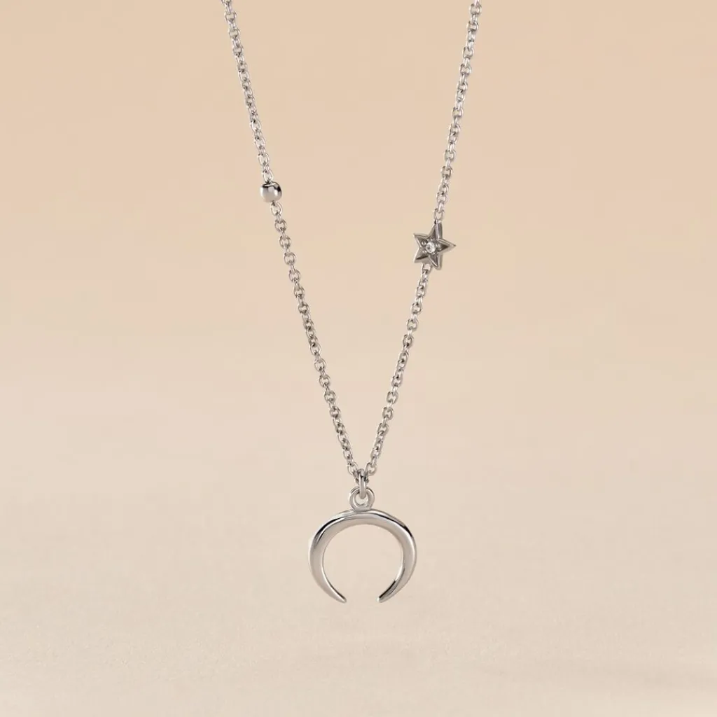 Collier Argent Blanc 925/1000 Corne Etoile Avec Oxyde De Zirconium Et Boules Maille Forcat 45cm