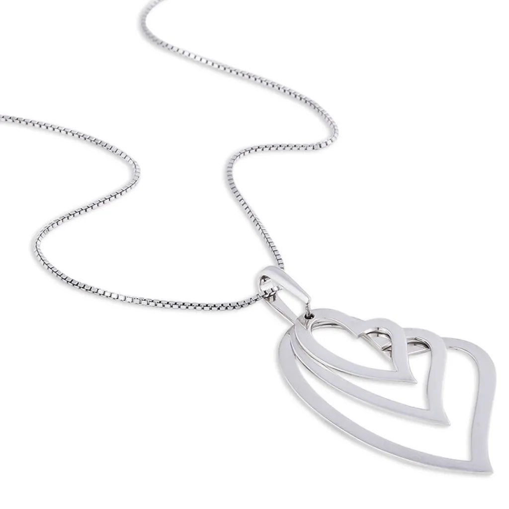 Collier Argent Blanc 925/1000 Triple Coeurs Ajoures Maille Forcat 42cm