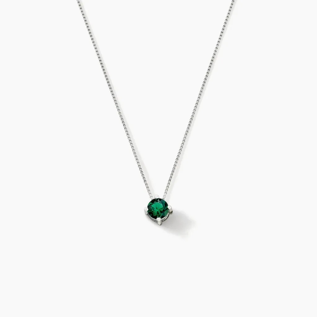 Collier Solitaire Argent Blanc 925/1000 Oxyde De Zirconium Vert Serti 4 Griffes Maille Venitienne 45cm