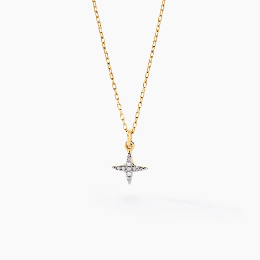 Collier Or Jaune 375/1000 Etoile Diamant 0.007cts Illusion Maille Forcat 40+2cm