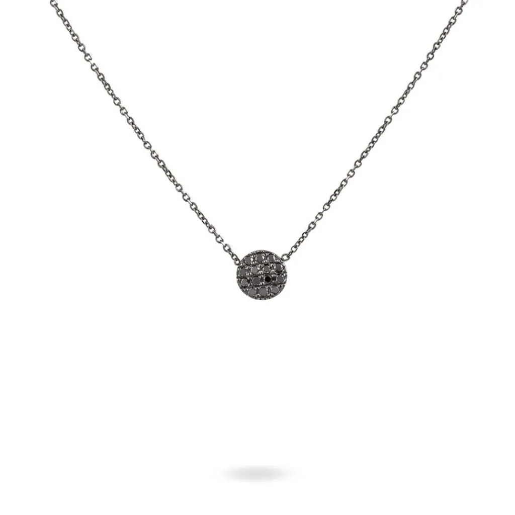 Collier Or Blanc 375/1000 Pavage Diamants Rhodie Noirs 0.46mm 42cm