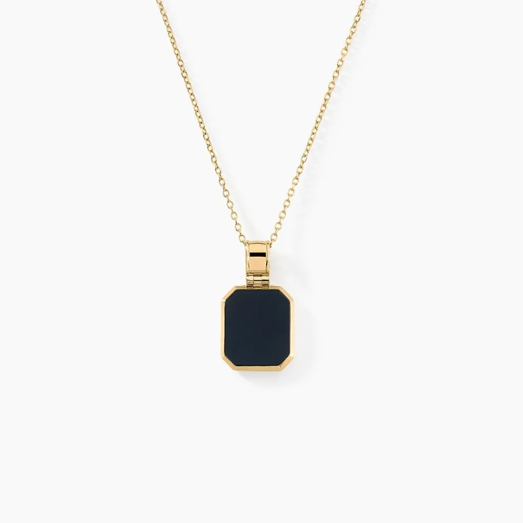 Collier Or Jaune 375/1000 Motif Octogonal Onyx Maille Forcat 50cm