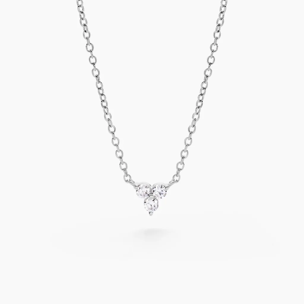 Collier Argent Blanc 925/1000 Fleur Oxydes De Zirconium Serti 2 Griffes Maille Forçat 42+3cm