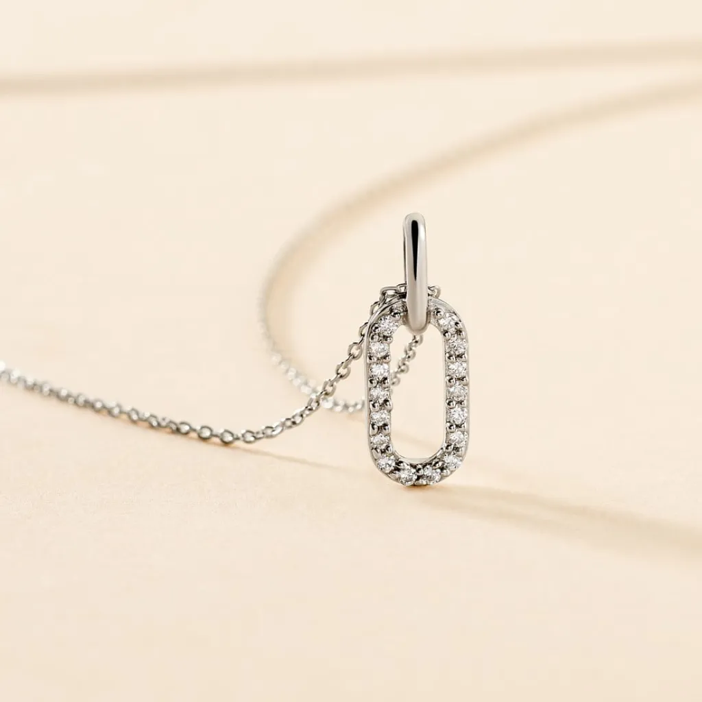 Collier Argent Blanc 925/1000 Rectangle Oxydes De Zirconium Maille Forcat 42+3cm