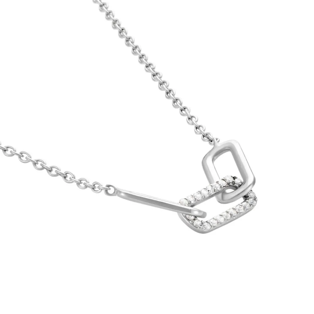 Collier Argent 925/1000 Maillons Entrelacés Oxyde De Zirconium Maille Jaseron 45cm