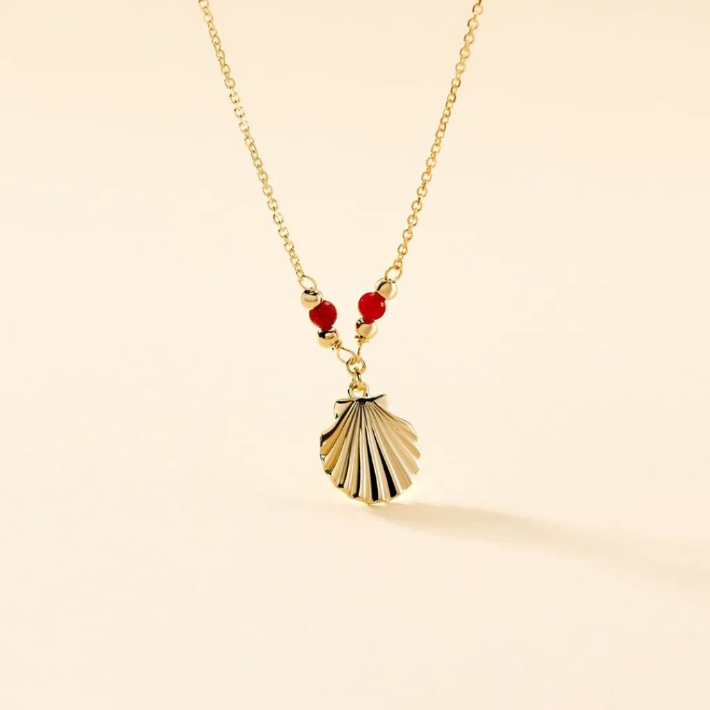 Collier Or Jaune 375/1000 Coquillage Cisele Corail Maille Jaseron 40+2cm