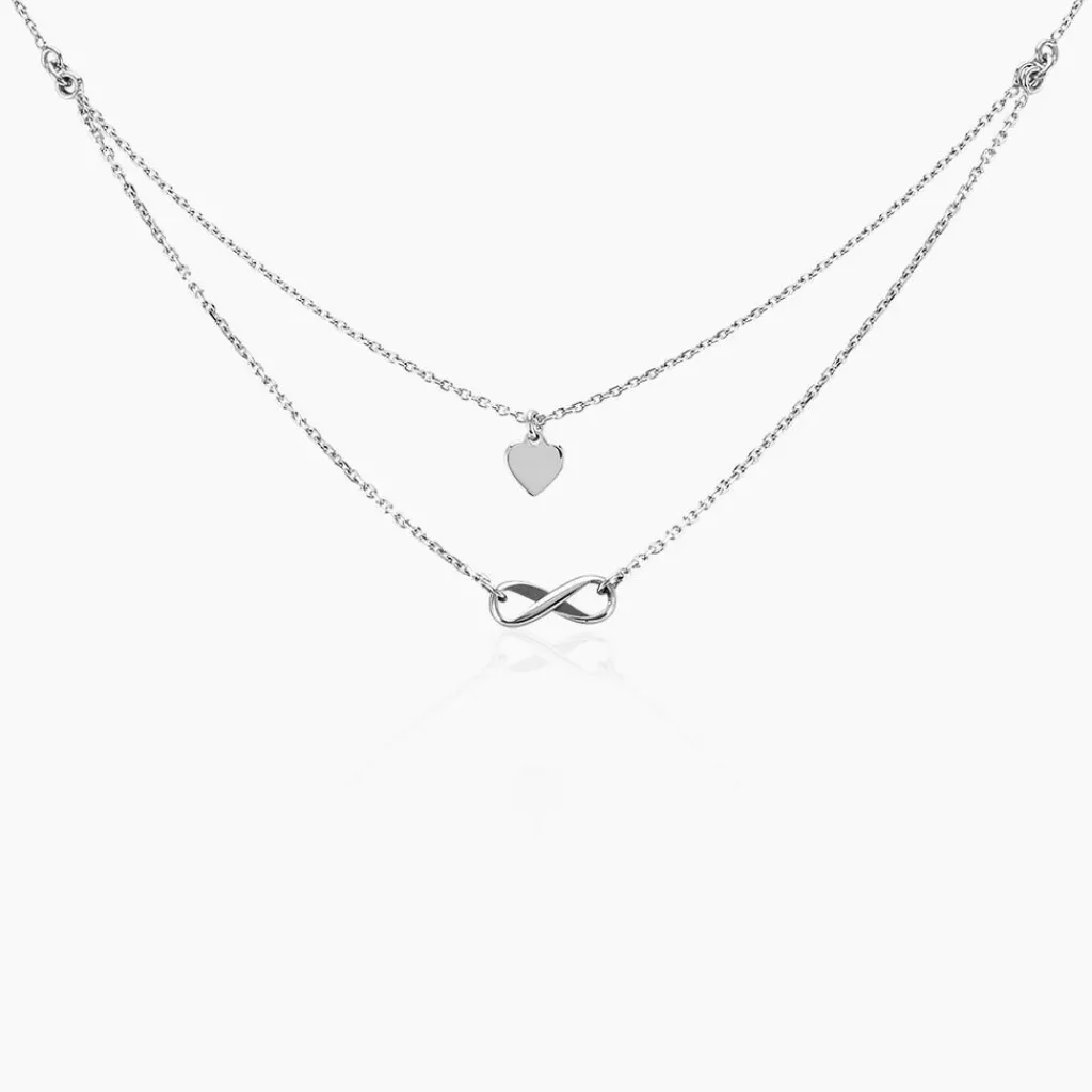 Collier Argent Blanc 925/1000 Infini Et Pastille Double Maille Forçat 36+3cm