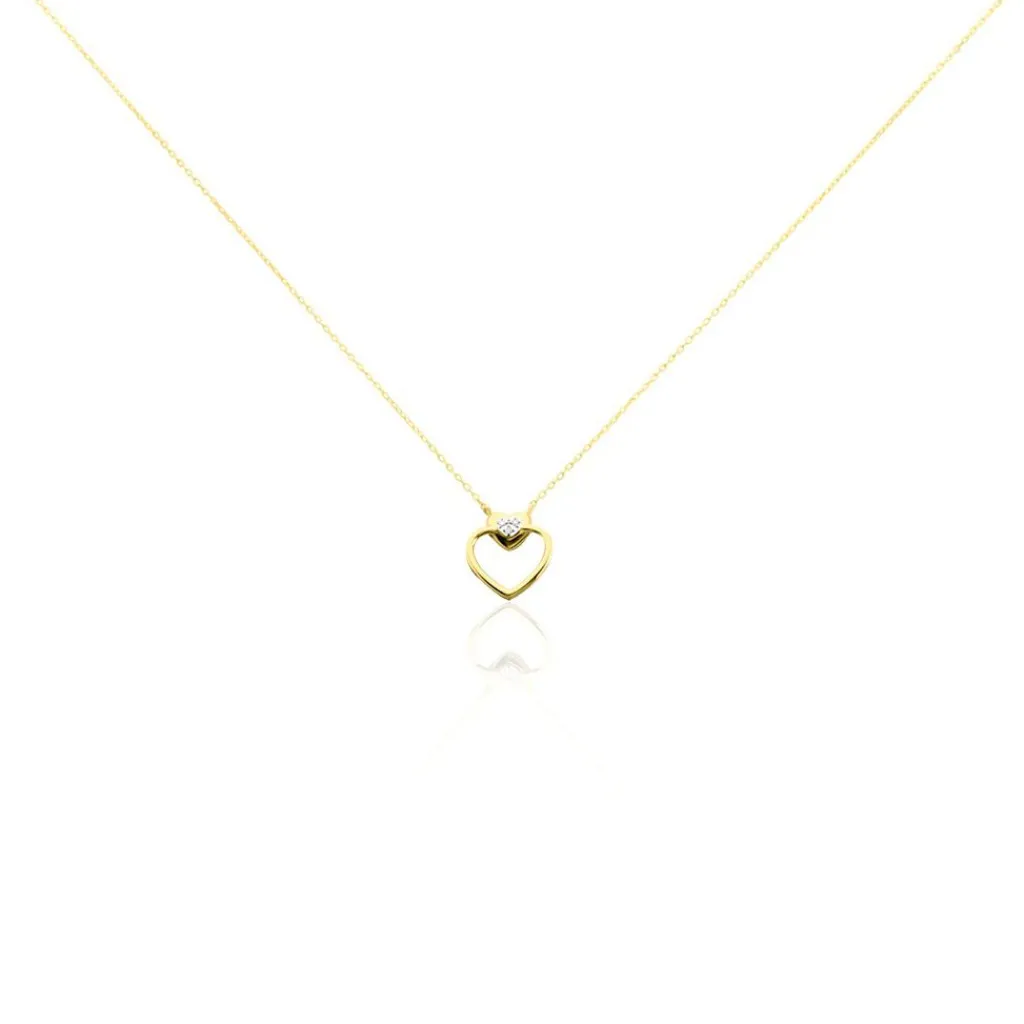 Collier Or Jaune 375/1000 Forme C艙ur Maille Forçat Pavage Diamants 42cm