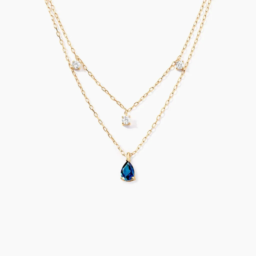 Collier Or Jaune 375/1000 Double Rang Topaze Bleu London Poire Et Oxyde Maille Forcat 40+2Cm