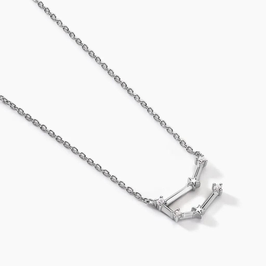 Collier Argent Blanc 925/1000 Constellation Zodiaque Gémeaux Oxydes De Zirconium Maille Forçat 42+3cm
