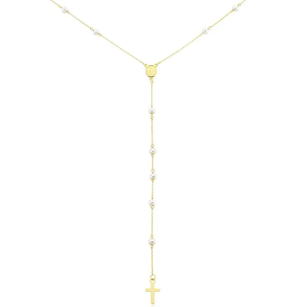 Collier Or Jaune 375/1000 Chapelet Croix Et Perles 49+2cm